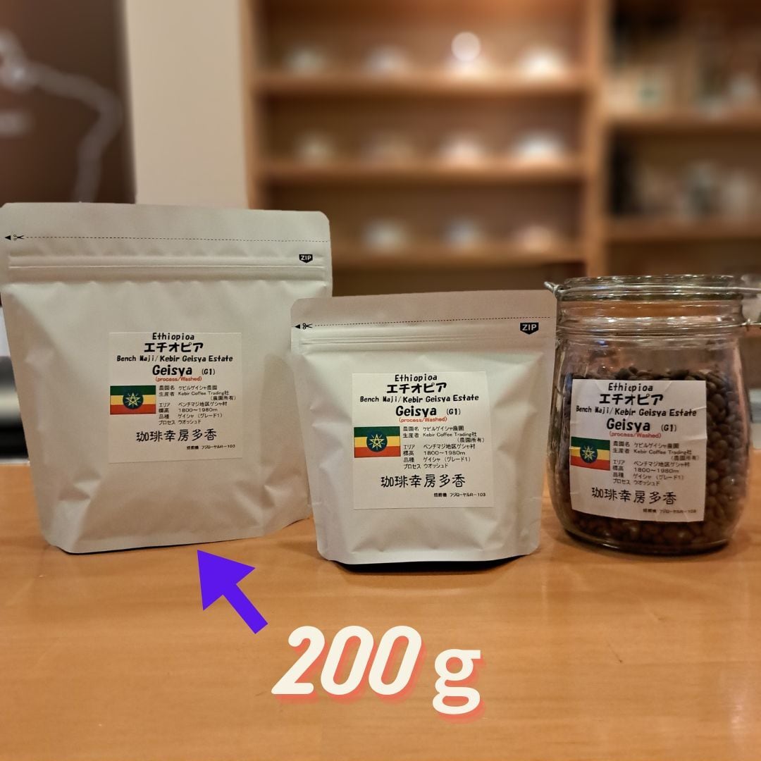 焙煎豆 エチオピア ケビルゲイシャ農園 ゲイシャ ナチュラルG1 200g